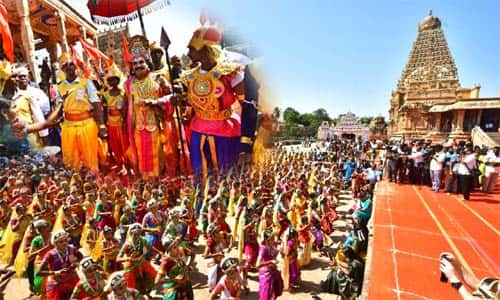 உலக புகழ் பெற்ற தஞ்சாவூர் பெரிய கோயிலை கட்டிய மாமன்னன் ராஜராஜசோழன் ஐப்பசி மாதம் சதய நட்சத்திரத்தன்று பிறந்ததால் ஒவ்வொரு ஆண்டும் ஐப்பசி மாதத்தில் வரும் சதய நட்சத்திரத்தன்று சதய விழா வெகுவிமரிசையாக 2 நாட்கள் கொண்டாடப்பட்டு வருகிறது. அதன்படி 1040-வது சதய விழா இன்று (அக்.31) நாளை (நவ. 1-ம் தேதி) என இரு நாட்கள் அரசு விழாவாக நடைபெறுகிறது. இதையொட்டி, அரண்மனை வளாகத்திலிருந்து நாட்டுப்புற கலைஞர்கள் பங்கேற்று மாபெரும் ஊர்வலம் தொடங்கியது. இதில் ஏராளமான நாட்டுப்புற கலைஞர்கள் கலந்து கொண்டு ஊர்வலமாக வந்தனர். தொடர்ந்து பெரிய கோவில் வளாகத்தில் 400 கலைஞர்கள் ராஜராஜ சோழனுக்கு பரதநாட்டியம் ஆடி புஷ்பாஞ்சலி செலுத்தினர்.