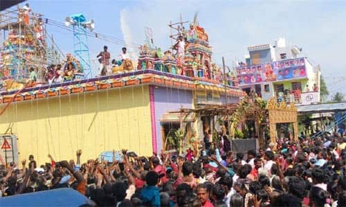 கச்சிராயபாளையம் அடுத்த அக்கராயபாளையம் பகுதியில் உள்ள விநாயகர், சுப்ரமணியர் மற்றும் ஸ்ரீ சக்தி மாரியம்மன் கோவில்கள் புனரமைக்கப்பட்டு, கும்பாபிஷேக விழா நேற்று நடந்தது. கடந்த மாதம் 27ம் தேதி முகூர்த்தக்கால் நடுதலுடன் விழா துவங்கியது. தொடர்ந்து 31ம் தேதி சக்தி அழைத்தல் மற்றும் 1ம் தேதி முதல் யாகசாலை பூஜை நடந்தது. தொடர்ந்து நேற்று அதிகாலை 7:00 மணிக்கு மங்கள இசை, விக்னேஸ்வர பூஜை, நான்காம் கால யாகசாலை பூஜை, பஞ்சாசன பூஜை, மூல மந்திர ஹோமம், நாடி சந்தானம் மற்றும் மகா மங்கள பூர்ணாஹூதி மற்றும் தீபாராதனை நடந்தது. தொடர்ந்து இரவு 9:00 மணிக்கு கடம் புறப்பாடாகி 10:00 மணியளவில் மூலவர் விமானம் மற்றும் கோபுரங்களுக்கு புனித நீர் ஊற்றி கும்பாபிஷேகம் நடந்தது.