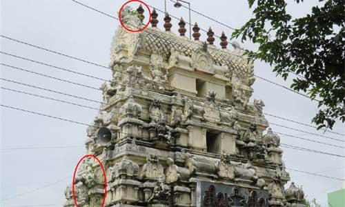 காஞ்சிபுரம் – உத்திரமேரூர் சாலை, ஆலடி பிள்ளையார் கோவில் அருகில், பணாமுடீஸ்வரர் கோவில் உள்ளது. ஹிந்து சமய அறநிலையத்துறையின் கட்டுப்பாட்டில் உள்ள இக்கோவிலுக்கு சோமவாரம், பிரதோஷம், கிருத்திகை, சஷ்டி, மாத சிவராாத்திரி, மஹா சிவராத்திரி உள்ளிட்ட விசேஷ நாட்களில் திரளான பக்தர்கள் வந்து செல்கின்றனர். இந்நிலையில், ராஜகோபுரத்தில் இரு இடங்களில் அரசமர செடிகள் வளர்ந்துள்ளன. இச்செடிகள் வேரூன்றி வளர்வதால், நாளடைவில் சிற்பங்கள் சேதமடைவதோடு, கோபுரமும் வலுவிழக்கும் சூழல் உள்ளது. எனவே, காஞ்சிபுரம் பணாமுடீஸ்வரர் கோவில் ராஜகோபுரத்தின் மீது இரு இடங்களில் வளர்ந்துள்ள அரச மரச் செடிகளை வேருடன் அகற்ற ஹிந்து சமய அறநிலையத் துறையினர் நடவடிக்கை