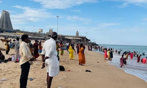 துாத்துக்குடி: திருச்செந்துார் கோவில் கடற்கரை பகுதியில் இரவில் பக்தர்கள் தங்க தடை விதிக்கப்பட்டுள்ளது. திருச்செந்துார் சுப்பிரமணிய சுவாமி கோவிலுக்கு வரும் பக்தர்கள், கடற்கரையில் தங்குவது வழக்கம். இதில், பக்தர்கள் பாதுகாப்பு கேள்விக்குறியாவதால், பாதுகாப்பை உறுதி செய்யும் நோக்கில், ‘கடற்கரை பகுதியில் இரவு, 10:00 மணி முதல் அதிகாலை, 4:00 மணி வரை யாரும் தங்க அனுமதி இல்லை’ என, கோவில் நிர்வாகம் தெரிவித்துள்ளது. நேற்று முன்தினம் இரவு குடும்பத்துடன் தங்கி இருந்த பக்தர்களை, கோவில் பணியாளர்கள், ஒலிபெருக்கி மூலம் அறிவுறுத்தி வெளியேற்றினர். கோவில் முன் கடற்கரை பகுதியில் இருந்து 500 மீட்டர் தொலைவில் உள்ள அய்யா கோவில் வரை கடற்கரை பகுதியில் பக்தர்கள் யாரும் இல்லாதவாறு கடலோர பாதுகாப்பு குழுவினர் மற்றும் கோவில் பணியாளர்கள் கண்காணிப்பில் ஈடுபட்டனர். கோவில் வளாகங்கள், அங்குள்ள மண்டபங்களில் தங்க அறிவுறுத்தப்படுகின்றனர். இதற்கிடையே, காவல் துறை தரப்பில், கடற்கரையில் பக்தர்கள் தங்க எந்த தடையும் விதிக்கவில்லை என, அறிவிப்பு வெளியிடப்பட்டுள்ளது