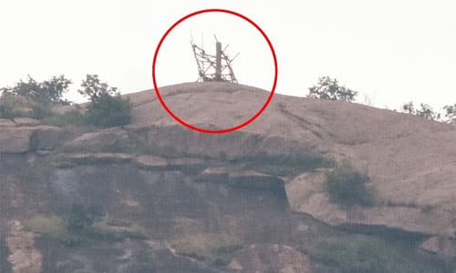 திருப்பரங்குன்றம்; திருப்பரங்குன்றம் மலை உச்சியிலுள்ள தீபத்தூணை சுற்றி மூங்கில் தடுப்புகள் அமைத்து பாதுகாக்கப்பட்டுள்ளது.