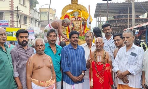 மயிலாடுதுறையில் அமைந்துள்ள திருஇந்தளூர் பரிமள ரங்கநாதர் கோயிலில் துலா உற்சவம் நவ.8-ஆம் தேதி கருடக் கொடியேற்றத்துடன் தொடங்கி நடைபெற்று வருகிறது. உற்சவத்தின் 5-ஆம் திருநாளான புதன்கிழமை பரிமள ரெங்கநாதருக்கு சிறப்பு திருமஞ்சனம் செய்யப்பட்டது. தொடர்ந்து, பெருமாள் உற்சவமூர்த்திகள் மங்களகிரியில் வீதியுலா புறப்பாடு நடைபெற்றது. இதில், திருமலை திருப்பதி தேவஸ்தானம் பெரிய ஜீயர் ஸ்ரீஸ்ரீ சடகோப ராமானுஜ ஜீயர் சுவாமிகள் கலந்துகொண்டு, பரிமள ரெங்கநாதரை சேவித்தார். அப்போது பக்தர்கள் பெரிய ஜீயர் சுவாமிகளிடம் அருளாசி பெற்றனர். தொடர்ந்து, நான்கு வீதிகளில் வீடுகள்தோறும் பக்தர்கள் தீபாராதனை எடுத்து பரிமள ரெங்கநாதரை வழிபட்டனர்.
