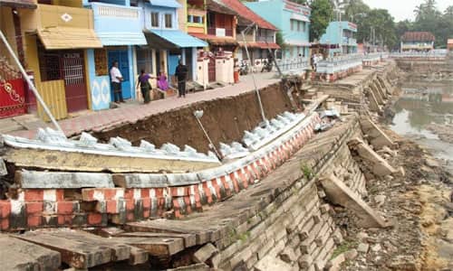 சுசீந்திரம் தாணுமாலையர் கோயில் தெப்பம் சுவர் இடிந்தது