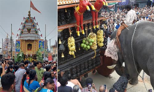பாலக்காடு; பாலக்காடு, கல்பாத்தி விசாலாட்சி சமேத விஸ்வநாதர் கோவில் திருத்தேரோட்டம் இன்று துவங்கியது. கேரள மாநிலம், பாலக்காடு மாவட்டம், கல்பாத்தியில் பிரசித்தி பெற்ற விசாலாட்சி சமேத விஸ்வநாதர் கோவில் தேர்திருவிழா, ஆண்டுதோறும் விமர்சையாக கொண்டாடப்படுகிறது. இந்த ஆண்டு திருவிழா, கடந்த 8ம் தேதி கொடியேற்றத்துடன் துவங்கியது. முக்கிய நிகழ்ச்சியான திருத்தேரோட்டம் இன்று துவங்கியது. இதை முன்னிட்டு, சுவாமிக்கும், அம்பாளுக்கும் நடந்த திருக்கல்யாணத்தை பக்தர்கள் தரிசித்தனர். தொடர்ந்து, விசாலாட்சி சமேத விஸ்வநாதர், வள்ளி தேவசேனா சமேத சுப்ரம்ணியர், கணபதி சுவாமிகள், அலங்கரிக்கப்பட்ட திருத்தேர்களில் எழுந்தருளினர். பல்லாயிரக்கணக்கான பக்தர்கள் கைலாசபதே, மகாகணபதிக்கு ஜெய், சுப்பிரமணிய சுவாமிக்கு ஜெய் என பக்தி கோஷங்களை முழங்கியபடி வடம் பிடித்து தேரை இழுத்தனர். பக்தர்களுக்கு இழுப்பதற்கு உதவும் வகையில் புதுப்பள்ளி அர்ஜுன் என்ற யானை தேரை பின்னாலிருந்து முட்டுக்கொடுத்து தள்ளின. கல்பாத்தியின் நான்கு வீதிகளிலும் தேர்கள் பவனி வந்தன. தொடர்ந்து காலை 11:00 மணி அளவில் பக்தர்களுக்கு அன்னதானம் வழங்கப்பட்டது. மாநில தலைமை போலீஸ் அதிகாரி ராவாடா சந்திரசேகர் விழாவின் பாதுகாப்பு ஏற்பாடுகளை மதிப்பீடு செய்ய வந்திருந்தார். விழாவில், இரண்டாம் நாளான நாளை மந்தக்கரை மகா கணபதி கோவில் தேர், திருவீதிகளில் வலம் வருகிறது. நாளை மறுநாள்பழைய கல்பாத்தி லட்சுமி நாராயண பெருமாள் கோவில் தேரோட்டமும், சாத்தபுரம் பிரசன்ன மகா கணபதி கோவில் தேரோட்டமும் துவங்குகின்றன. அன்று மாலை, 6:00 பணியளவில் விசாலாட்சி சமேத விஸ்வநாதர் கோவில் அருகே, தேர் திருவிழாவின் சிறப்பு நிகழ்ச்சியான ஆறு தேர்களின் சங்கமம் நடக்கிறது. விழாவையொட்டி மாவட்ட எஸ்.பி., அஜித் குமார் மேல்பார்வையில் பலத்த போலீஸ் பாதுகாப்பு போடப்பட்டுள்ளது.