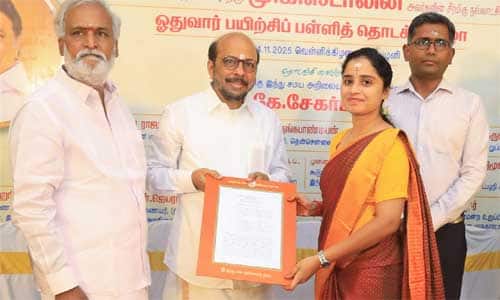 சென்னை: வடபழனி முருகன் கோவிலில், ஓதுவார் பயிற்சி பள்ளியை துவக்கி வைத்த அமைச்சர் சேகர்பாபு, மூன்று ஆசிரியர்களுக்கு, பணி நியமன ஆணை வழங்கினார்.