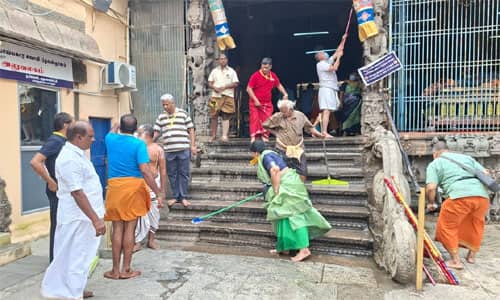 காஞ்சிபுரம் மாவட்டம், ஸ்ரீபெரும்துாரில் ஆதிகேச பெருமாள் மற்றும் பாஷ்யகார சுவாமி கோவில் உள்ளது. இங்கு, வைணவ மகான் ராமானுஜர் தானுகந்து திருமேனியாக பக்தர்களுக்கு அருள்பாலித்து வருகிறார். இந்த கோவிலில், சென்னை உயர் நீதிமன்றம் மற்றும் உயர் நீதிமன்ற மதுரை கிளையின் வழக்கறிஞர்கள் சார்பில், நேற்று கோவிலை சுத்தம் செய்யும் பணி நடந்தது. 100க்கும் மேற்பட்ட வழக்கறிஞர்கள் பங்கேற்று, கோவில் முழுதும் சுத்தம் செய்யும் பணியில் ஈடுபட்டனர்.