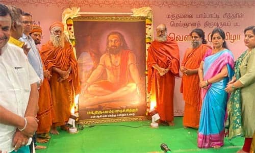 பஞ்ச சித்ரா பவுண்டேஷன் பார் ஆர்ட்ஸ் அண்டு கல்ச்சர் அமைப்பு சார்பில், ஓவியர் பருதி ஞானம் வரைந்த, பாம்பாட்டி சித்தரின் திருவுருவப்பட ஓவியம் வெளியீட்டு விழா பேரூர் தவத்திரு சாந்தலிங்க அடிகளார் கலை அறிவியல் தமிழ் கல்லூரியில் நேற்று நடந்தது. இவ்விழாவில், பேரூர் ஆதினம் மருதாசல அடிகளார், சிரவை ஆதினம் குமரகுருபர சுவாமிகள், காமாட்சிபுரி ஆதினம் பஞ்சலிங்கேஸ்வர சுவாமிகள், சுவாமி வேதாந்தானந்தா ஆகியோர் சிறப்பு விருந்தினர்களாக கலந்து கொண்டு, பாம்பாட்டி சித்தரின் திருவுருவ படத்தை திறந்து, வெளியிட்டனர். இதன் முதல் பிரதியை, பேரூர் ஆதினம் மருதாசல அடிகளார் வழங்க, சென்னையைச் சேர்ந்த டாட் ஸ்கூல் ஆப் டிசைன் நிறுவனர் ராம் ராமநாதன் பெற்று கொண்டார். இவ்விழாவில், பஞ்ச சித்ரா பவுண்டேஷன் பிரீத்தி லட்சுமி மற்றும் ஏராளமானோர் கலந்து கொண்டனர்.