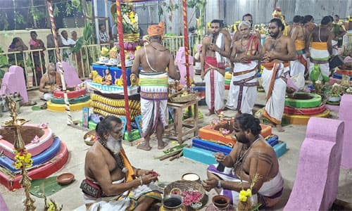 ரிஷிவந்தியத்தில் 1,500 ஆண்டுகள் பழமை வாய்ந்த முத்தாம்பிகை சமேத அர்த்தநாரீஸ்வரர் கோவில் உள்ளது. கோவில் மூலவர் சுயம்பு லிங்கத்திற்கு தேனபிஷேகம் செய்யும்போது அர்த்தநாரீஸ்வரராக ஒளி வடிவத்தில் பக்தர்களுக்கு அருள்பாலிக்கிறார். திருமண தடை, பேச்சில் குறைபாடு மற்றும் குழந்தை பாக்கியம் ஆகியவற்றிற்கு புண்ணிய ஸ்தலமாக இக்கோவில் உள்ளது. புனரமைக்கப்பட்ட இக்கோவில் கும்பாபிஷேக விழா கடந்த 23ம் தேதி கணபதி ஹோமத்துடன் தொடங்கியது. தொடர்ந்து, 24ம் தேதி திஷா, சாந்தி உள்ளிட்ட ஹோமங்கள் நடந்தன. நேற்று அக்னி சங்கிரஹணம், தீர்த்த சங்கிரஹணம், புண்ணியாக வஜனம் உள்ளிட்ட பூஜைகளை தொடர்ந்து மாலை 5:00 மணிக்கு முதல் கால யாக சாலை பூஜை சிவாச்சாரியார்கள் நாகராஜ், சோமு குருக்கள் தலைமையில் துவங்கியது. தொடர்ந்து இன்று வேதமந்திரங்கள் ஓத யாகசாலை பூஜைகள் நடக்கிறது. நாளை 27ம் தேதி, காலை 9:30 மணியளவில் கோவில் கலசங்களுக்கு புனித நீர் ஊற்றி கும்பாபிஷேகம் நடக்கிறது. விழாவிற்கான முன்னேற்பாடுகளை ஊர்பொதுமக்கள், அறநிலையத்துறை அலுவலர்கள் செய்து வருகின்றனர்.