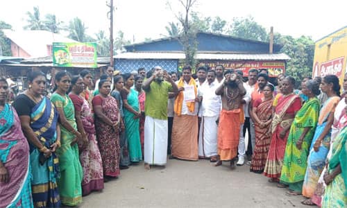 இந்து சமய அறநிலையத்துறை மயிலாடுதுறை மண்டலத்துக்கு உட்பட்ட தஞ்சாவூர் மாவட்டத்தில் உள்ள கஞ்சனூர் சுயம்பிரகாசர் கோயில், காசி விஸ்வநாதர் கோயில், சூரியனார்கோயில், சுக்கிரன் கோயில், கும்பகோணம் ஏரகரம் கந்தநாதசாமி கோயில் மற்றும் மயிலாடுதுறை தாலுகாவில் உள்ள மாங்குடி சிவலோகநாதர் சுவாமி கோயில் ஆகிய ஆறு கோயில்களில் கடந்த ஐந்து ஆண்டுகளுக்கு மேலாக திருப்பலி தொடங்குவதில் தாமதம் ஏற்பட்டுள்ளது. இந்த பணிகளை விரைந்து தொடங்க வலியுறுத்தி அகில பாரத இந்து மகா சபா கட்சியினர் கடந்த மார்ச் மாதம் மனு அளித்தும் எந்த நடவடிக்கையும் மேற்கொள்ளப்படவில்லை. இந்த நிலையில் கோரிக்கைகளை அறநிலையத்துறை அதிகாரிகளுக்கு தெரியப்படுத்தும் வகையில் அகில பாரத இந்து மகா சபா மாநில பொதுச் செயலாளர் ராம நிரஞ்சன் தலைமையில் அக்கட்சி நிர்வாகிகள் மற்றும் கிராம மக்கள் 50 க்கு மேற்பட்டோர் இன்று மயிலாடுதுறை இந்து சமய அறநிலையத்துறை இணை ஆணையர் அலுவலகத்திற்கு சங்கு ஊதியவாறு முற்றுகைப் போராட்டம் நடத்துவதற்காக பேரணியாக வந்தனர். தொடர்ந்து அவர்கள் கோரிக்கைகளை வலியுறுத்தி முழக்கங்களை எழுப்பிய பின்னர் கோரிக்கை மனுவை அறநிலையத்துறை அலுவலரிடம் வழங்கினர். அவர்களிடம் இந்த ஆறு கோயில்களிலும் விரைவில் திருப்பணி தொடங்க முடிவெடுக்கப்பட்டுள்ளதாக எழுத்து பூர்வமாக அதிகாரிகள் விளக்கம் அளித்ததை தொடர்ந்து போராட்டத்தை கைவிட்டு கலைந்து சென்றனர்.