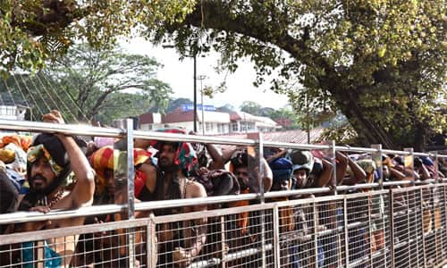 மண்டல கால பூஜைகளுக்காக சபரிமலை நடை திறக்கப்பட்ட கடந்த 16-ம் தேதி முதல் பக்தர்கள் கூட்டம் அலைமோதுகிறது. கடந்த நான்கு நாட்களில் தினமும் சுமார் ஒரு லட்சத்துக்கு அதிகமான பக்தர்கள் தரிசனம் நடத்தியுள்ளனர். நெரிசல் ஏற்படுவதை தவிர்ப்பதற்காக ஸ்பாட் புக்கிங் எண்ணிக்கை 20 ஆயிரத்திலிருந்து 5 ஆயிரமாக குறைக்கப்பட்டுள்ளது. அதன் பின்னரும் கூட்டம் அதிகமாக உள்ளது. கடந்த 23- ம் தேதி அதிகபட்சமாக ஒரு லட்சத்து 17 ஆயிரம் பக்தர்கள் தரிசனம் நடத்தினர். இந்த சீசனில் நேற்று காலை வரை சுமார் ஒன்பது லட்சம் பக்தர்கள் தரிசனம் நடத்தியுள்ளதாக கணக்குகள் தெரிவிக்கின்றது. கூட்டம் அதிகரித்து அசம்பாவிதங்கள் நடைபெறாமல் தடுப்பதற்காக திருவிதாங்கூர் தேவசம்போர்டு பல்வேறு நடவடிக்கைகளை எடுத்துள்ளது. இதன்படி சபரிமலை தரிசனத்திற்கு வரும் பக்தர்களிடம் ஆன்லைன் முன்பதிவு அல்லது ஸ்பாட் புக்கிங் கூப்பன் இல்லாத பக்தர்கள் நிலக்கல்லில் இருந்து பம்பை செல்ல அனுமதிக்கப்படமாட்டார்கள். ஒரு நாளுக்கான ஸ்பாட் புக்கிங் முன்பதிவு முடிந்து விட்டால் அடுத்த நாள் கூப்பன் எடுத்த பின்னரே தரிசனத்திற்கு செல்ல முடியும். அதுவரை நிலக்கலில் பக்தர்களுக்கு உணவு மற்றும் தங்கும் வசதிகள் செய்து தரப்படும். இவ்வாறு தேவசம்போர்டு அறிவித்துள்ளது.