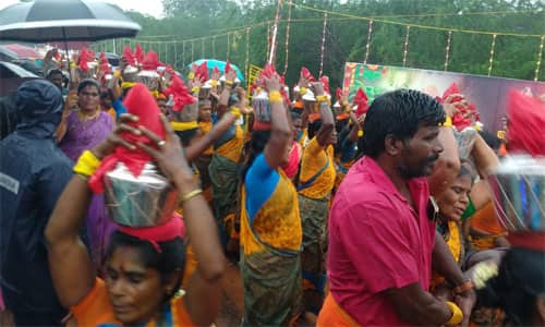 கீழக்கரை; கீழக்கரை அருகே மாயாகுளம் ஊராட்சிக்கு உட்பட்ட தச்சன் ஊரணி பகுதியில் பழமை வாய்ந்த செங்காட்டுடைய அய்யனார் கோயில் உள்ளது. நவ., 30 ஞாயிற்றுக்கிழமை காலை 10:30 கும்பாபிஷேகம் நடப்பதை முன்னிட்டு நேற்று மாலை 4 மணிக்கு 200 குடங்களில் புனித நீர் சுமந்து பக்தர்கள் ஊர்வலமாக வந்தனர். முன்னதாக இன்று 3:00 கீழக்கரை அருகே உள்ள தொண்டாலை மேலக்கரையில் உள்ள அடைக்கலம் காத்த அய்யனார் கோயிலில் இருந்து ஏராளமான பக்தர்கள் கூடினர். ராமேஸ்வரம், தேவிபட்டினம், திருப்புல்லாணி உள்ளிட்ட தமிழகத்தின் பல்வேறு பகுதிகளில் இருந்து எடுக்கப்பட்ட புனித நீர் அனைத்து குடங்களிலும் ஊட்டப்பட்டு அங்கிருந்து கொட்டும் மழையிலும், மேளதாளங்கள் முழங்க குதிரைகள் நடனமாடியவாறு செல்ல மாலையில் கோயில் யாகசாலையை வந்தடைந்தனர். யாகசாலை முன்பு வரிசையாக அடுக்கி வைக்கப்பட்ட நீர் ஊற்றப்பட்ட குடங்களுக்கு சிறப்பு பூஜைகள் தீபாராதனைகள் நடந்தது. பக்தர்களுக்கு அன்னதானம் வழங்கப்பட்டது. ஏற்பாடுகளை நட்டாத்தி சத்திரிய ஹிந்து நாடார் உறவின்முறை பாத்தியப்பட்ட அனைத்து கிராம பொதுமக்கள் மற்றும் குலதெய்வ வழிபாட்டு குழுவினர் செய்திருந்தனர்.