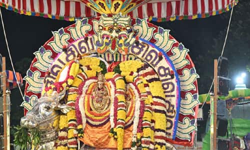 திருவண்ணாமலை அருணாசலேஸ்வரர் கோவிலில், கார்த்திகை தீபத்திருவிழாவில், நேற்று ஐந்தாம் நாள் விழா நடந்தது. இதை முன்னிட்டு அதிகாலை, 3:00 மணிக்கு கோவில் நடை திறக்கப்பட்டு, அருணாசலேஸ்வரர், உண்ணாமுலையம்மனுக்கு சிறப்பு அபிஷேகம், பூஜை நடந்தது. இதை தொடர்ந்து காலையில், மூஷிக வாகனத்தில் விநாயகர், கண்ணாடி ரிஷப வாகனத்தில் சந்திரசேகரர் (உண்ணாமலையம்மன் சமேத அருணாசலேஸ்வரர் நின்ற நிலை அலங்காரம் ) வீதி உலா வந்து பக்தர்களுக்கு அருள்பாலித்தனர். இரவு, 10:00 மணிக்கு நடந்த பஞ்சமூர்த்திகள் வீதி உலாவில், வெள்ளி சின்ன ரிஷப வாகனத்தில் விநாயகர், வெள்ளி மயில் வாகனத்தில் வள்ளி தெய்வானை சமேத சுப்ரமணியர், வெள்ளி பெரிய ரிஷப வாகனத்தில் உண்ணாமுலையம்மன் சமேத அருணாசலேஸ்வரர், வெள்ளி சின்ன ரிஷப வாகனத்தில் பராசக்தி அம்மன், வெள்ளி ரிஷப வாகனத்தில் சண்டிகேஸ்வரர் வீதி உலா வந்து பக்தர்களுக்கு அருள்பாலித்தனர். நேற்று இரவு புறப்பட்டு இன்று அதிகாலை 5.30 மணிக்கு நிலையை வந்து அடைந்தார்.ஆயிரக்கணக்கானோர் சுவாமிகளை வழிபட்டனர்.
