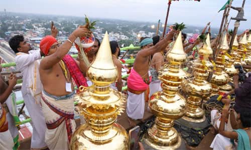 தொடர்ந்து, 10 ஆயிரம் சதுரடி பரப்பளவில், 99 குண்டங்கள் கூடிய யாகசாலை அமைக்கப்பட்டு, கடந்த நவ.27ம் தேதி முதல் கால யாகசாலை பூஜையுடன் கும்பாபிஷேக யாகம் துவங்கியது. இதையடுத்து 28ம் தேதி இரண்டு மற்றும் மூன்றாம் கால யாகசாலை பூஜையும், 29ம் தேதி நான்கு மற்றும் ஐந்தாம் கால யாகசாலை பூஜையும், 30ம் தேதி ஆறு மற்றும் ஏழாம் கால யாகசாலை பூஜையும் நடைபெற்றன.