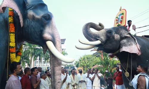 குருவாயூர் கிருஷ்ணர் கோயிலில் கார்த்திகை மாதம் ஏகாதசி உற்ஸவம் நடக்கிறது. 1976 டிச., 2ல் ஏகாதசி உற்ஸவத்தின்போது கேசவன் என்ற யானை நோய்வாய்ப்பட்டு இறந்தது. ஒவ்வொரு ஆண்டும் கேசவன் யானையின் நினைவு தினத்தன்று கோயில் யானைகள் பார்த்தசாரதி கோயிலில் இருந்து கேசவன் யானையின் படத்துடன் வீதி உலா வந்து உருவச்சிலை முன் நினைவஞ்சலி செலுத்துவது வழக்கம். நேற்று காலை 7:00 மணிக்கு யானைகள் ஊர்வலமாகச்சென்று உருவ சிலை முன் அணிவகுத்து துதிக்கை உயர்த்தி வணங்கின. யானைகளுக்கு மூலிகை சாப்பாடு, பழ வகைகள், கரும்பு, சர்க்கரை, அவல் வழங்கப்பட்டன. குருவாயூரில் இன்று (1ம் தேதி) ஏகாதசி உற்ஸவம் வெகு விமரிசையாக நடக்க உள்ளது. ஏகாதசி நோன்பு இருக்கும் பக்தர்களுக்கு பிரசாதங்களும் வழங்கப்படுகின்றன. ஏகாதசி உற்ஸவத்தை முன்னிட்டு நேற்று மேல்புத்துார் கலையரங்கில் நடந்த செம்பை சங்கீத உற்ஸவத்தில் நுாற்றுக்கும் மேற்பட்ட இசைக்கலைஞர்கள் பஞ்சரத்ன கீர்த்தனைகளை பாடினர். இன்று நிறைவடைகிறது.