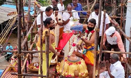நேற்று காலை 8:30 மணியளவில் இரண்டாம் கால யாகசாலை பூஜை முடிந்து கடம் புறப்பாடாகி 9:00 மணிக்கு கோவில் கலசத்திற்கு புனித நீரூற்றி கும்பாபிஷேகம் நடந்தது.
