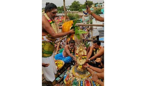 நவ. 29ம் தேதி இரண்டு மற்றும் மூன்றாம் கால பூஜை தீபாராதனை நடந்தது. முக்கிய நிகழ்ச்சியான கும்பாபிஷேக விழா நேற்று காலை நடந்தது.
