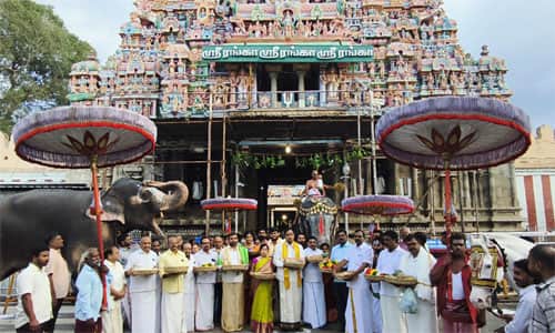 திருப்பதி கோவிலிருந்து ஸ்ரீரங்கம் ரங்கநாதருக்கு பட்டு வஸ்திரம் மரியாதை