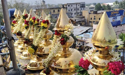 பழநி திருஆவினன்குடி கோயிலில் கோபுர கலசங்கள் பொருத்தம்