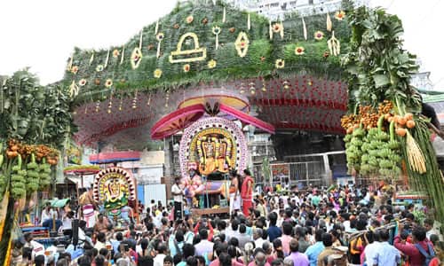 திருவண்ணாமலை, அருணாசலேஸ்வரர் கோவிலில், நாளை நடக்கவுள்ள மஹா தீப திருவிழாவை முன்னிட்டு, 25 ஏக்கர் பரப்பளவிலுள்ள  கோவில் வளாகம் மற்றும் ஒன்பது கோபுரங்கள் மின் விளக்குகளால் அலங்கரிக்கப்பட்டு, இவை, 20 கி.மீ., தொலைவு  வரை தெரியுமளவிற்கு ஜொலிக்கின்றன. மேலும், கோவில் கொடிமர வளாகம் மற்றும் இரண்டாம் பிரகாரம், கிளி கோபுர நுழைவாயில் ஆகியவற்றில் வாழை மரங்கள், இளநீர் குலைகளால் அலங்கரிக்கப்படும்,  பல்வேறு  வண்ண ரோஜாக்கள், சாமந்தி பூ தோரணம்,  பன்னீர் கரும்பு தோரணம் என, இரண்டாம் பிரகாரம் அலங்கரிக்கப்பட்டு, கண்கொள்ளா காட்சியாக உள்ளன. கோவில் கொடிமர நுழைவாயிலில், இரண்டு நந்தியம்பெருமானுக்கு நடுவில் சிவலிங்கம் உள்ளது போல், வண்ண மலர் தோரணங்கள் கட்டப்பட்டு, அதன்மேல் மின்விளக்குகள் அலங்காரம் செய்யப்பட்டுள்ள காட்சி, காண்போரை பக்தி பரவசத்தில் ஆழ்த்துகிறது. நாளை மாலை, 6:00 மணிக்கு, 2,668, அடி உயர மலை உச்சியில், மஹா தீபம் ஏற்றப்பட உள்ளது. விழாவையொட்டி சுவாமி சன்னதி முழுவதும், பல்வேறு வண்ண ரோஜா, சாமந்தி பூக்களால்  தோரணங்கள் கட்டி அலங்காரம் செய்யப்பட்டு வருகிறது. கோவில் வளாகம் முழுவதும், வண்ண மின் விளக்குகளால் அலங்கரிக்கப்பட்டு ஜொலிக்கிறது. பக்தர்கள் குவிந்து வருகின்றனர்.
