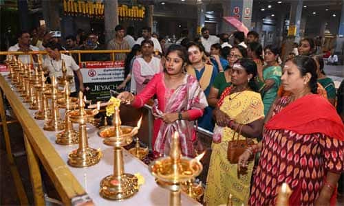 பரணி கார்த்திகை திருநாளான நேற்று, வடபழனி முருகன் கோவிலில் பக்தர்கள், உபயதாரர்கள் மூலம் விளக்குகள் வழங்கப்பட்டன. அவற்றில், 108 விளக்குகள் வள்ளி, தெய்வானை சுப்பிரமணியர் சன்னதியில், பக்தர்கள், உபயதாரர்கள் வாயிலாக ஏற்றப்பட்டன. மூலவர் சன்னதியில், 36 குத்து விளக்குகள் ஏற்றப்பட்டன. இந்த நிலையில், கார்த்திகை மகா தீபத் திருநாளான இன்று அதிகாலை 4:30 மணிக்கு கோவில் நடை திறக்கப்பட்டது. காலை 6:30 மணிக்கு அபிஷேகம் முடிந்தவுடன், மூலவருக்கு விசேஷ ராஜ அலங்காரம் செய்யப்பட்டு, பகல் 12:00 மணிக்கு உச்சிகாலத்தில் வெள்ளி கவசம் சார்த்தப்பட்டது. மாலை 5:00 மணிக்கு விசேஷ வஸ்திர சந்தனக்காப்பு அலங்காரம் நடக்கிறது. மாலை 6:00 மணிக்கு கார்த்திகை பூஜை நடத்தப்படுகிறது. மேலும், 27 நட்சத்தி ரங்கள், நான்கு கோபுரங்கள், எட்டு சன்னதிகளில் கார்த்திகை தீபம் ஏற்றப்படுகிறது. இரவு 8:30 மணிக்கு சொக்கப்பனை கொளுத்தப்படுகிறது.