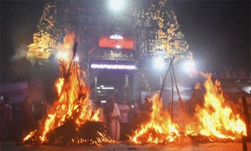 புதுச்சேரி: புதுச்சேரி வேதபுரீஸ்வரர் கோவிலில் சொக்கப்பனை ஏற்றும் நிகழ்ச்சி நடந்தது.