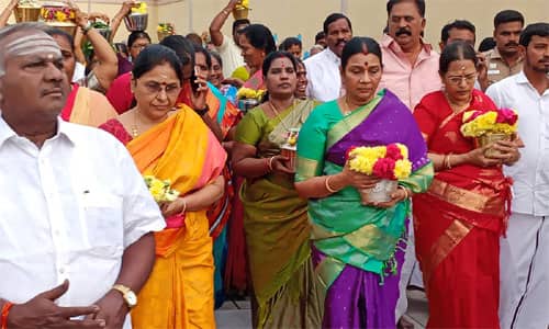மயிலாடுதுறை மாவட்டம், சீர்காழி அருகே திருவெண்காடு கிராமத்தில், தேவார பாடல் பெற்ற பிரம்ம வித்யாம்பிகை சமேத சுவேதாரண்யேஸ்வரர் கோவில் உள்ளது. நவகிரஹங்களில் இது புதன் ஸ்தலமாகும். இங்கு சிவபெருமானின் அம்சமான அகோரமூர்த்தி, தனி சன்னிதியில் அருள்பாலித்து வருகிறார். அகோர மூர்த்தியை வழிபட்டால் சத்ரு உபாதைகள் நீங்கும் என்பது ஐதீகம். அகோர மூர்த்திக்கு ஞாயிறுதோறும் சிறப்பு அபிஷேகம் நடைபெறும். இதில், கார்த்திகை மூன்றாவது ஞாயிறு அன்று நடைபெறும் அபிஷேகம் சிறப்பானதாக கூறப்படுகிறது. அந்த வகையில், ஞாயிற்றுக்கிழமையான நேற்று நடந்த அகோரமூர்த்தி திருநாளில், தமிழக முதல்வர் ஸ்டாலின் மனைவி துர்கா பால்குடம் எடுத்து வழிபட்டார். பக்தர்களுடன் கோவில் சந்திர தீர்த்தத்தில் இருந்து பால்குடம் எடுத்து, கோவிலை வலம் வந்து அகோர மூர்த்திக்கு அபிஷேகம் செய்து வழிபாடு நடத்தினார். தொடர்ந்து, சுவாமி, அம்பாள், நடராஜர், புதன் பகவான் சன்னிதிகளுக்கு சென்று வழிபாடு நடத்தினார்.
