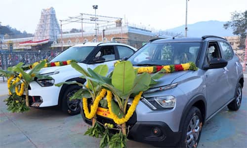 திருப்பதியில் உள்ள லோட்டஸ் எலக்ட்ரிக் ஆட்டோ வேர்ல்ட் பிரைவேட் லிமிடெட்டைச் சேர்ந்த ஸ்ரீ அர்ஜுன் கொல்லிகொண்டா என்ற பக்தர் இன்று புதன்கிழமை ரூ.10 லட்சம் மதிப்புள்ள சிட்ரோயன் (EC3) மின்சார காரை தேவஸ்தானத்திற்கு நன்கொடையாக வழங்கினார். இதேபோல், சென்னையைச் சேர்ந்த ஸ்ரீ சரவணன் கருணாகரன் என்ற பக்தர் ரூ.9 லட்சம் மதிப்புள்ள சிட்ரோயன் (பசால்ட் எக்ஸ் பிளஸ் YT) காரை நன்கொடையாக வழங்கினார். இதற்காக, நன்கொடையாளர்கள் ஸ்ரீவாரி கோயில் முன் கார்களுக்கு சிறப்பு பூஜைகள் செய்து, கோயில் பேஷ்கர் ஸ்ரீ ராமகிருஷ்ணாவிடம் சாவியை வழங்கினர்.