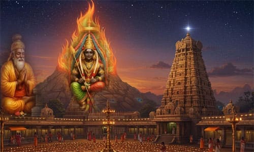 நக்கீரருக்கு ஜோதி வடிவில் காட்சி: தல புராணத்தில் திருப்பரங்குன்றம் மலைக்கு ஒவ்வொரு யுகத்திலும் ஒவ்வொரு பெயர் இருந்துள்ளது. மலையே சிவலிங்க வடிவமாக இருக்கிறது. 14 விசேஷமான தீர்த்தங்கள் உள்ளன. அதில் மலையிலிருந்து 9 தீர்த்தங்கள் உற்பத்தியாகின்றன. தமிழ்ச்சங்கத்தின் தலைமை புலவரான நக்கீரருக்கு சாப விமோசனம் அருளி பாதாள கங்கை எனும் தீர்த்தத்தை உருவாக்கி அதில் நீராடி பின் அவருக்கு மலையின் மேல் மலை முகட்டில் ஜோதி ரூபமாக முருகன் காட்சி தந்தார். அதனால் மலை மேல் ஜோதியின் அடையாளமாக தீபம் ஏற்றப்பட்டது.