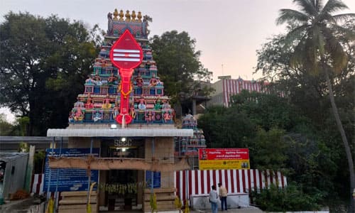 குருந்தமலை கோவில் ராஜகோபுரத்தில் 22 அடி உயரம் 7 அடி அகல வேல்