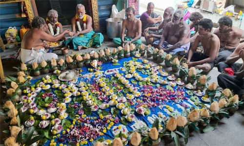 வடமதுரை; வடமதுரை மீனாட்சிசுந்தரேஸ்வரர் கோயில் வளாகத்தில் இருக்கும் ஐயப்பன் கோயிலில் பொன்ஆபரண தர்மசாஸ்தா அறக்கட்டளை சார்பில் 55ம் ஆண்டு மண்டல பூஜை விழா நடந்தது. இவ்விழாவிற்காக பால்கேணி மேட்டில் இருந்து 27 சைவ, வைணவ கோயில் புனித தீர்த்தங்கள் ரத வீதிகள் வழியே ஊர்வலமாக கோயிலுக்கு கொண்டு வரப்பட்டது. பின்னர் 108 சங்கு, தேங்காய், எலுமிச்சை, தீர்த்தம், 18 படி, கோ, யாக வேள்வி பூஜைகள், சிறப்பு பஜனை, அபிஷேகம் நடந்தது. பக்த ஆஞ்சநேயர் கோயில் அர்ச்சகர் நாராயணன் நடத்தி வைத்தார். விழா ஏற்பாட்டினை அறக்கட்டளை தலைவர் ராமதாஸ், செயலாளர் நந்தக்குமார், பொருளாளர் இளங்கோ உள்ளிட்ட ஐயப்ப சேவா சங்கத்தினர் செய்திருந்தனர்.