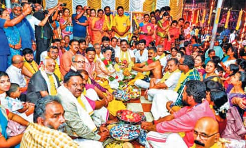 ஆரியங்காவு: கேரள மாநிலம் ஆரியங்காவு தர்மசாஸ்தா, புஷ்கலா தேவி திருக்கல்யாணத்தை முன்னிட்டு, மாம்பழத்துறையில் புஷ்கலாதேவி, ஜோதி ரூபமாக ஆவாஹனம் செய்து மணமகள் அழைப்பு சடங்கு நடந்தது. புஷ்கலையின் தந்தையை, மதம் பிடித்த யானையிடம் இருந்து பகவான் காத்த இடம் மாம்பழத்துறை. இதுதான் உன்மகள் இனி வாசம் செய்யப் போகும் தலம் என்று பகவான் சொல்லாமல் சொல்லி சுட்டிக் காட்டிய இடம். ஜோதி ரூபத்தில் தேவி மாம்பழத்துறைக்கு வந்த கோலத்திலேயே உறைந்த திருமேனியாக காட்சி தரும் புஷ்கலாதேவி, மணமகள் அலங்காரத்தில் 8 கைகளில் 8 ஆயுதங்களை ஏந்தி, சத்தியத்திற்கு கட்டுப்பட்டவராக சர்வ அலங்காரத்தில் எழுந்தருளி இருக்கிறார். திருக்கல்யாண வைபவத்திற்கு தங்கள் குல தேவியை ஆரியங்காவுக்கு அழைத்துச் செல்ல அனைத்து ஊர்களில் இருந்தும் சவுராஷ்டிரா மக்கள் திரண்டு வந்திருந்தனர். மாம்பழத்துறை மக்கள், சவுராஷ்டிரா மக்களை மணமகள் புஷ் கலா தேவி குடும்பத்தா ராக ஏற்று, பூரண கும்ப மரியாதை யுடன் வரவேற்றனர். கருவறையில் சத்திய ஜோதியாக விளங்கும் அம்மனின் ஜோதி ரூப சைதன்யத்தை திருவிளக்கில் ஆவாஹனம் செய்து, ஜோதி ரூபத்தை, மேல்சாந்தி மது சர்மா, ஆரியங்காவு தேவஸ்தான சவுராஷ்டிர மஹாஜன சங்க நிர்வாகிகளிடம் வழங்கினார். சங்கத்தின் சார்பில் மூத்தத் தலைவர் சுப்ரமணியன் ஜோதி ரூபத்தை ஏந்திவர, ஆரியங்காவுக்கு ஊர்வலமாக ஜோதியை அழைத்து வந்தனர். சாஸ்தாவுடன் ஐக்கியம் ஆரியங்காவு ஊர் எல்லையில் கோயில் அதிகாரிகள், அட்வைசரி கமிட்டி நிர்வாகஸ்தர்கள், ஊர் மக்கள் ஜோதியை வரவேற்றனர். மாலை 6:45 மணிக்கு மங்கள குலவை முழங்க, சரண கோஷத்துடன் கருவறையில் ஐயனின் ஜோதியுடன் அம்பாள் ஜோதி ரூபமாக ஐக்கியமாகினார். ஏற்பாடுகளை மாம்பழத்துறை கோயில் அட்வைசரி கமிட்டி நிர்வாகிகள், ஆரியங்காவு தேவஸ்தான சவுராஷ்டிரா மஹாஜன சங்கத் தலைவர் ராகவன், பொதுச்செயலாளர் ராஜன், உப தலைவர்கள் ஹரிஹரன், ரவிச்சந்திரன், செயலாளர்கள் கண்ணன், மோகன், பொருளாளர் ஆனந்தம், நிர்வாகிகள் சரவணன், ஜெயக்குமார், பிரதீப் செய்தனர். மாம்பழத்துறை புஷ்கலா தேவி சவுராஷ்டிரா சபை தலைவர் மோகன், செயலாளர் அமர்நாத் தலைமையில் அனைவருக்கும் அன்னதானம் வழங்கப்பட்டது. திருவாங்கூர் தேவசம் போர்டு உறுப்பினர் ராஜூ, பகவான் பிரதிநிதியாகவும், ஆரியங்காவு தேவஸ்தான சவுராஷ்டிரா மகாஜன சங்கத் தலைவர் ராகவன் அம்பாள் பிரதிநிதியாக இருந்து வெற்றிலை, பாக்கு, சொர்ண புஷ்பம் மாற்றிக் கொள்ளும் நிச்சயதாம்பூலம் வைபவம் நடந்தது. பொதுச்செயலாளர் ராஜன் சடங்குகளை நடத்தி வைத்தார். இன்று (டிச., 26) திருக்கல்யாணம், நாளை மண்டலாபிஷேகம் நிறைவு பூஜையும் நடக்கின்றன.