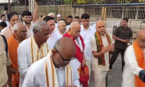 திருப்பதி; ஆந்திரப் பிரதேச மாநிலம் திருப்பதியில் உள்ள வெங்கடேஸ்வர சுவாமி கோவிலில் ஆர்.எஸ்.எஸ் தலைவர் மோகன் பாகவத் வழிபாடு செய்தார். திருமலை திருப்பதி தேவஸ்தான அதிகாரிகள் அவரை வரவேற்று, பின்னர் தரிசனத்திற்கு அழைத்துச் சென்றனர். ரங்கநாயக்க மண்டபத்தில் அர்ச்சகர்கள் அவருக்குப் பட்டு வஸ்திரங்களை அணிவித்து, சுவாமியின் பிரசாதங்களை வழங்கிக் கௌரவித்தனர்.