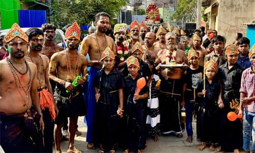 திருப்புவனத்தில் மண்டல பூஜை: கடவுள் வேடமணிந்து வலம் வந்த சிறுவர்கள்