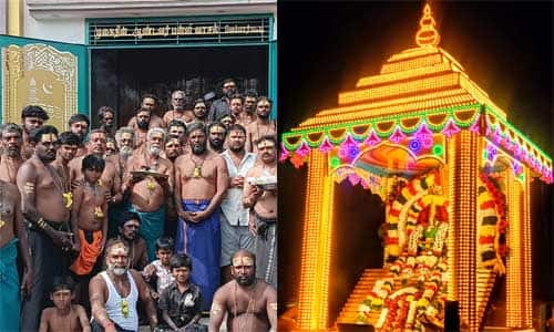 வத்தலக்குண்டு: கலியுக வரத ஐயப்பன் கோயிலில் மண்டல பூஜை நடந்தது. மஞ்சளாறு விநாயகர் கோயிலில் ஐயப்ப பக்தருக்கு அலகு குத்தும் நிகழ்ச்சி நடந்தது .உடல் முழுவதும் அலகு குத்திய பக்தர் முதுகில் குத்தப்பட்ட அலகால் ஐயப்பன் உருவப் படத்துடன் கொண்ட மலரால் அலங்கரிக்கப்பட்ட தேரை இழுத்து வந்தார்.