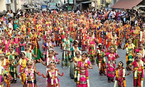 மார்கழி மாதத்தில், பெருமாள் கோவில்களில் சிறப்பு கலை மற்றும் ஆன்மிக நிகழ்வாக, திருப்பாவை பாடல்களை அடிப்படையாக கொண்டு, நாட்டிய வைபவம் நடத்தப்படுவது வழக்கத்தில் உள்ளது. இதில், பரத நாட்டிய கலைஞர்கள் திருப்பாவை பாடல்களுக்கு ஏற்ப நடனமாடி, அதன் ஆன்மிகப் பொருளை வெளிப்படுத்துகின்றனர். இந்த பரத நாட்டிய நிகழ்ச்சி, பிரசித்தம் பெற்ற மிகப்பெரிய கோவில்களில் மட்டும் நடத்தப்படுவது வழக்கம். அதன்படி, உத்திரமேரூரில் ஹிந்து சமய அறநிலையத் துறைக்கு சொந்தமான, சுந்தர வரதராஜ பெருமாள் கோவிலில் திருப்பாவை நாட்டிய வைபவ நிகழ்ச்சி நேற்று நடந்தது. இதில், நடராஜர் நாட்டியாலயா நடன கலைஞர்கள் மற்றும் பள்ளி மாணவியர் பங்கேற்று, ஆண்டாள் வேடமிட்டு ஒன்றரை மணி நேரத்திற்கு திருப்பாவையின் ஒவ்வொரு பாசுரத்தையும் நடனமாடி அசத்தினர். இந்த நடன நிகழ்ச்சி ஜாக்கி புக் ஆப் வேர்ல்டு ரெக்கார்டு புத்தகத்தில் உலக சாதனை பட்டியலில் இடம் பெற்றுள்ளது. நிகழ்ச்சியில் பங்கேற்ற நடன கலைஞர்கள் மற்றும் மாணவியர் அனைவருக்கும் விருது மற்றும் சான்றிதழ்கள் வழங்கப்பட் டன.
