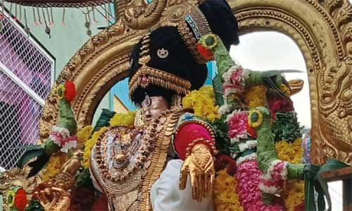 நிறைவு நாளான நேற்று மாலை 4:00 மணிக்கு பெருமாள் கொண்டையிட்டு, மோகினி அலங்காரத்தில் கிளி மாலையுடன் உலா வந்தார்.
