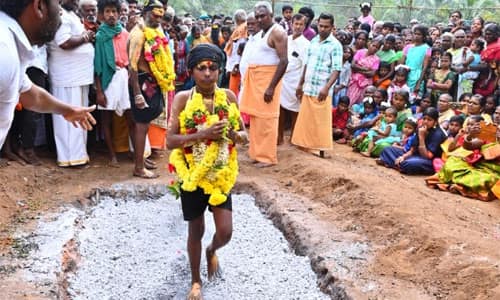 மணக்காட்டூர் ஸ்ரீதர்மசாஸ்தா கோவிலில் பூக்குழி இறங்கிய ஐயப்ப பக்தர்கள்