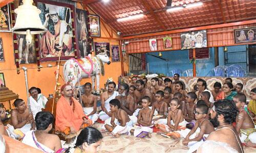 புதுச்சேரி: கருவடிக்குப்பம் கோமாதா ஆலயத்தில் உள்ள வேதாஸ்ரம குருகுலத்திற்கு, வருகை தந்த அபிநவ சங்கர பாரதி மஹாசுவாமிகள் வேதம் படிக்கும் மாணவர்களுடன் கலந்துரையாடினார்.