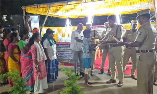பழநி முருகன் கோயிலில் நடக்கும் தைப்பூச விழாவில் கலந்து கொள்வதற்காக தமிழகத்தின் பல்வேறு மாவட்டங்களில் இருந்து லட்சக்கணக்கான பக்தர்கள் விரதம் இருந்து பாதயாத்திரையாக செல்கின்றனர். 10 நாட்களுக்கு 20 ஆயிரம் பக்தர்களுக்கு ஒளிரும் குச்சிகள், பட்டைகள், குடிநீர் பாட்டில்கள், பிஸ்கட், மாத்திரை, மருந்துகள் உள்ளிட்டவைகளை வழங்கும் நிகழ்ச்சியை எஸ்.பி., பிரதீப் துவக்கி வைத்தார். டி.எஸ்.பி., கார்த்திகேயன், இன்ஸ்பெக்டர் தங்கராஜ், எஸ்.ஐ., கள் சிவராஜ், உமாமகேஸ்வரி, லியோனி ரஞ்சித்குமார், விக்னேஷ் குமார் கலந்து கொண்டனர்.