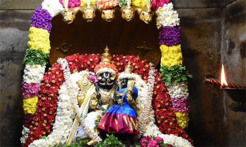விழுப்புரம்: விழுப்புரம் அடுத்த பூவரசங்குப்பம் லட்சுமி நரசிம்மர் கோவிலில், 300வது சுவாதி ஹோமம் நடந்தது. அதனையொட்டி, நேற்று காலை 6:00 மணிக்கு மூலவருக்கு அபிஷேகமும், 9:00 மணிக்கு மூலவர் நரசிம்மருக்கு தங்கக் கவசம் அணிவித்து சிறப்பு அலங்காரம் செய்து தீபாராதனை நடந்தது. தொடர்ந்து, சுவாதி நட்சத்திரத்தை முன்னிட்டு 10:00 மணிக்கு யாகசாலையில் சுதர்சன தன்வந்திரி ேஹாமம், சுக்த ஹோமம் நடந்தது. மதியம் 1:00 மணிக்கு மகா பூர்ணாஹூதி மற்றும் கடம் புறப்பட்டு மூலவர் மற்றும் உற்சவர் சுவாமிகளுக்கு அபிஷேகம் நடந்தது. மூலவர் லட்சுமி நரசிம்மர் தங்க கவசத்தில் பக்தர்களுக்கு அருள்பாலித்தார். ஏராளமான பக்தர்கள் சுவாமி தரிசனம் செய்தனர். கோவில் அர்ச்சகர் பார்த்தசாரதி பட்டாச்சாரியார் தலைமையிலான பட்டாச்சாரியார்கள் ேஹாமம் நடத்தினர்.