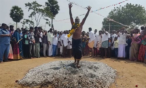 திருவாடானை அங்காள பரமேஸ்வரி அம்மன் கோயிலில் பூக்குழி இறங்கிய பக்தர்கள்