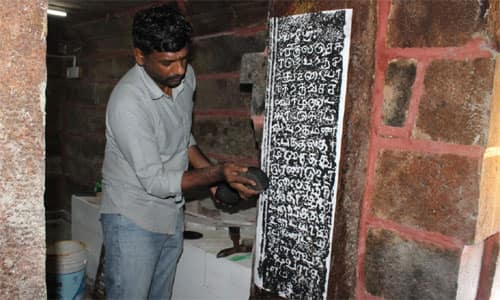 பெருமாள் கோயில் கருவறையில் கல்வெட்டை கண்டுபிடித்த அமைச்சர்
