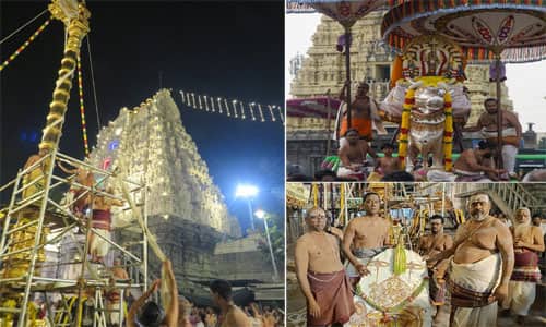 காஞ்சிபுரம் காமாட்சியம்மன் கோவிலில், நடப்பாண்டிற்கான பிரம்மோத்சவம் இன்று காலை 5:15 மணிக்கு, காஞ்சி இளைய மடாதிபதி சத்ய சந்திரசேகரேந்திர சரஸ்வதி சுவாமிகள் முன்னிலையில், கொடிமரத்திற்கு பல்வேறு பூஜைகள் செய்யப்பட்டு, காமாட்சியம்மன் படம் இடம்பெற்ற கொடியை ஏற்றினர். அதன்பின், வெள்ளி விருஷப வாகனத்தில் எழுந்தருளிய காமாட்சியம்மன், நான்கு ராஜ வீதிகளிலும் உலா வந்தார். இரவு தங்க மான் வாகன உத்சவம் நடந்தது. நாளை காலை மகரத்திலும், இரவு சந்திர பிரபையிலும், நாளை காலை தங்க சிம்ம வாகனத்திலும், இரவு யானை வாகனத்திலும் காமாட்சியம்மன் உலா வருகிறார். இதில், ஒன்பதாம் நாள், பிரபல உத்சவமான வெள்ளி ரதம், மார்ச் 1ம் தேதி இரவு விமரிசையாக நடக்கிறது. காமாட்சியம்மன் கோவில் கொடியேற்றம் கூடுதல் படம் சார்.. காஞ்சிபுரம் காமாட்சியம்மன் கோவில் மாசி பிரம்மோத்சவத்தின் முதல் நாளான நேற்று காலை லட்சுமி, சரஸ்வதி தேவியருடன் காமாட்சியம்மன் விருஷப வாகனத்தில் எழுந்தருளி வீதியுலா வந்தார்.