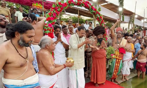 பின், நளன் குளத்தில் புனித நீர் கொண்டு அபிஷேகம் மற்றும் சிறப்பு பூஜை செய்யப்பட்டு, ஏழு ஆரத்தி மகா தீபாரதனை நடந்தது. முன்னதாக யானை, குதிரை, கழுதை, ஒட்டகம், ஆட்டுக்கிடா, சேவல் உள்ளிட்ட அஷ்ட பிராணிகளுக்கு சிறப்பு பூஜைகள் நடந்தது.
