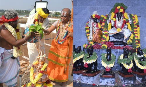 விழாவிற்கு ராமனுஜ ஜீயர், மன்னார்குடி ஜீயர், செண்டலங்கார செண்பக மன்னர் ராமானுஜ சுவாமிகள் தலைமை வகித்தனர். கும்பாபிஷே கத்தில் பங்கேற்ற பக்தர்கள் மீது புனித நீர் தெளிக்கப்பட்டது.