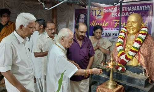 நேற்று மாலை இசைக் கலைஞர் டி.வி.கோபாலகிருஷ்ணன், செம்பை வைத்தியநாத பாகவதரின் உருவச்சிலை முன், குத்துவிளக்கேற்றி சங்கீத உற்ஸவத்தை துவக்கி வைத்தார். விழாக்குழு தலைவர் செம்பை சுரேஷ், ஒருங்கிணைப்பாளர் கீழத்தூர் முருகன் கலந்து கொண்டனர்.