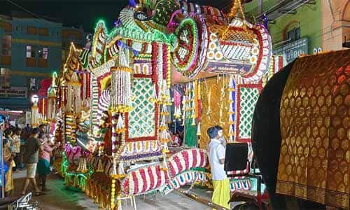 பாத விநாயகர் கோயிலில் துவங்கிய ஊர்வலம் சன்னதி வீதி, காந்தி மார்க்கெட் ரோடு, பெரிய கடைவீதி வழியாக வந்தது.