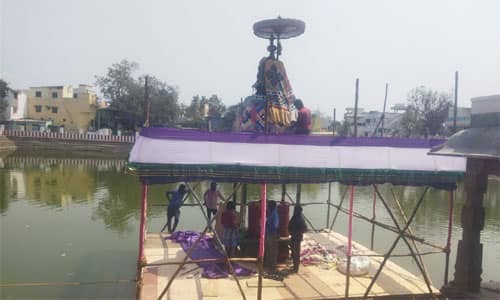 சிங்க பெருமாள் கோவில்: சிங்க பெருமாள் கோவில் அனுமந்தபுரம் சாலையில் நரசிம்ம பெருமாள் கோவில் உள்ளது. இக்கோவில் ஹிந்து சமய அறநிலைய கட்டுப்பாட்டில் உள்ளது. கோவில் அருகில் சுத்த புஷ்கரணி குளம் உள்ளது. இதில் ஆண்டுதோறும் மாசி மாதம் தெப்ப உற்சவம் ஐந்து நாட்கள் நடைபெறும். உற்சவர் பிரகலாதவரதர், அலங்காரத்துடன் ஸ்ரீதேவி, பூதேவியருடன் தெப்பத்தில் எழுந்தருளி, மூன்று முறை வலம் வருவார். இந்த ஆண்டு தெப்ப உற்சவம் வரும் 1ம் தேதி மாலை துவங்கி ஐந்து நாட்கள் நடத்தவும், ஐந்து நாட்கள் தவன உற்சவம் நடத்தவும், கோவில் உபயதாரர்கள் மற்றும் அதிகாரிகள் முடிவு செய்தனர். இதையடுத்து, கடந்த மூன்று நாட்களாக, மதில் சுவர்களில் வண்ணம் பூசுதல் மற்றும் குளத்தில் புதிய தெப்பம் அமைக்கும் பணிகள் தீவிரமாக நடைபெற்று வருகின்றன.