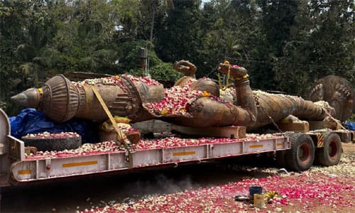 தஞ்சாவூர், கும்பகோணத்தில் தயாரிக்கப்பட்ட 51 அடி உயர, 65 டன் எடையிலான ஐம்பொன் ஆதிபராசக்தி தயாரிக்கப்பட்டு, சேலத்திற்கு அனுப்பி வைக்கப்பட்டது.