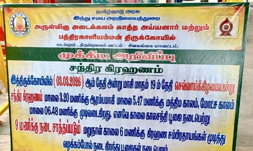 சந்திரகிரஹணத்தை முன்னிட்டு மார்ச் 3ல் மடப்புரம் கோயில் நடை அடைப்பு